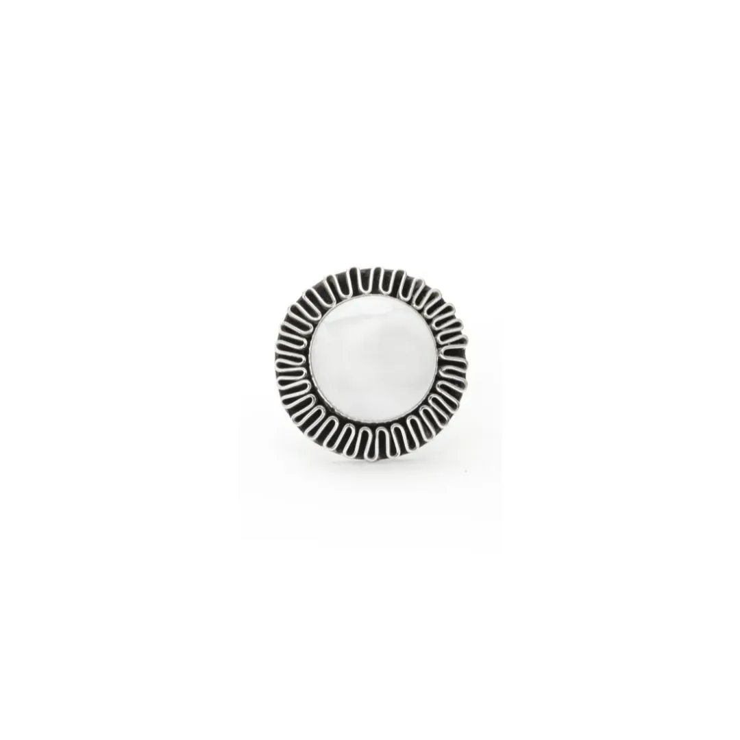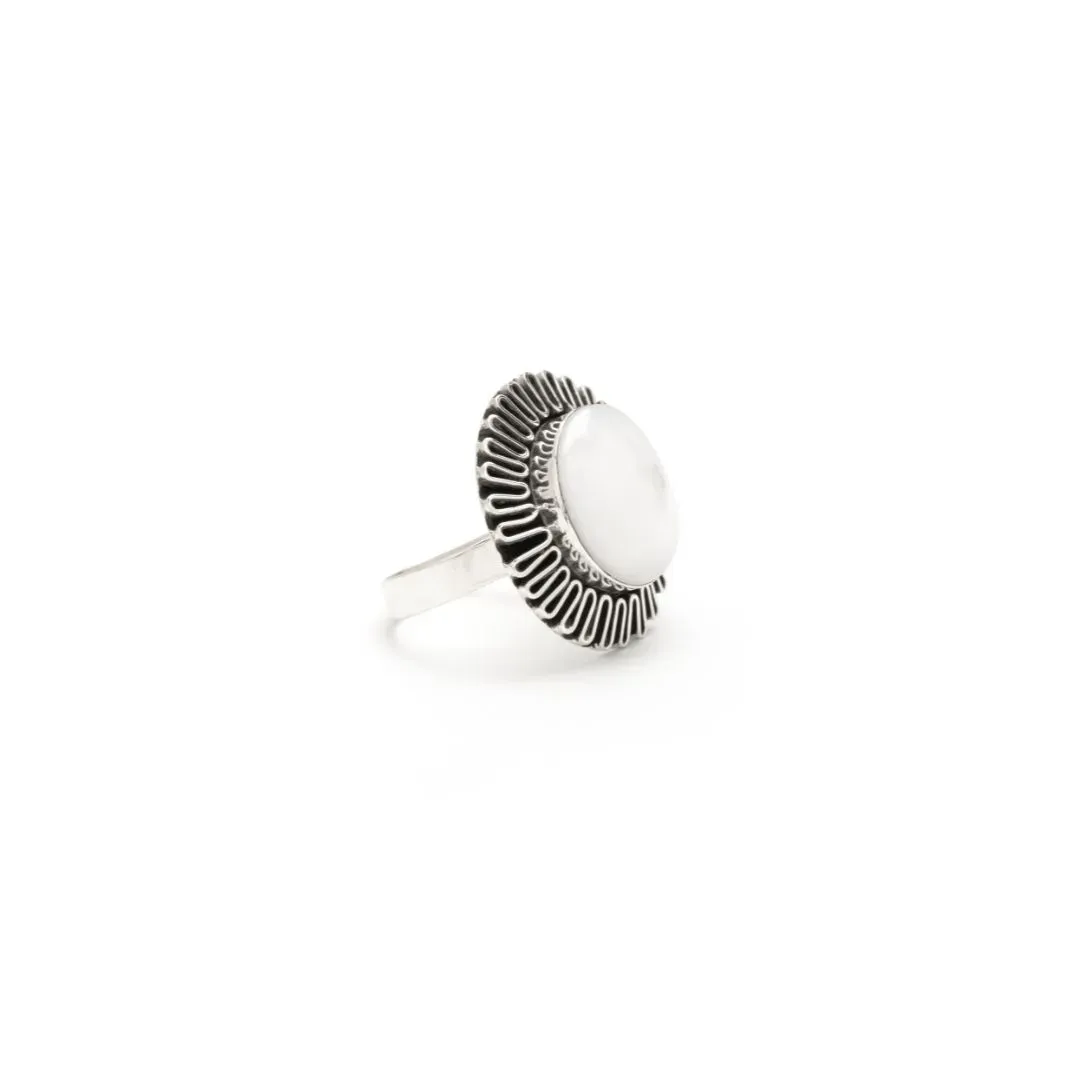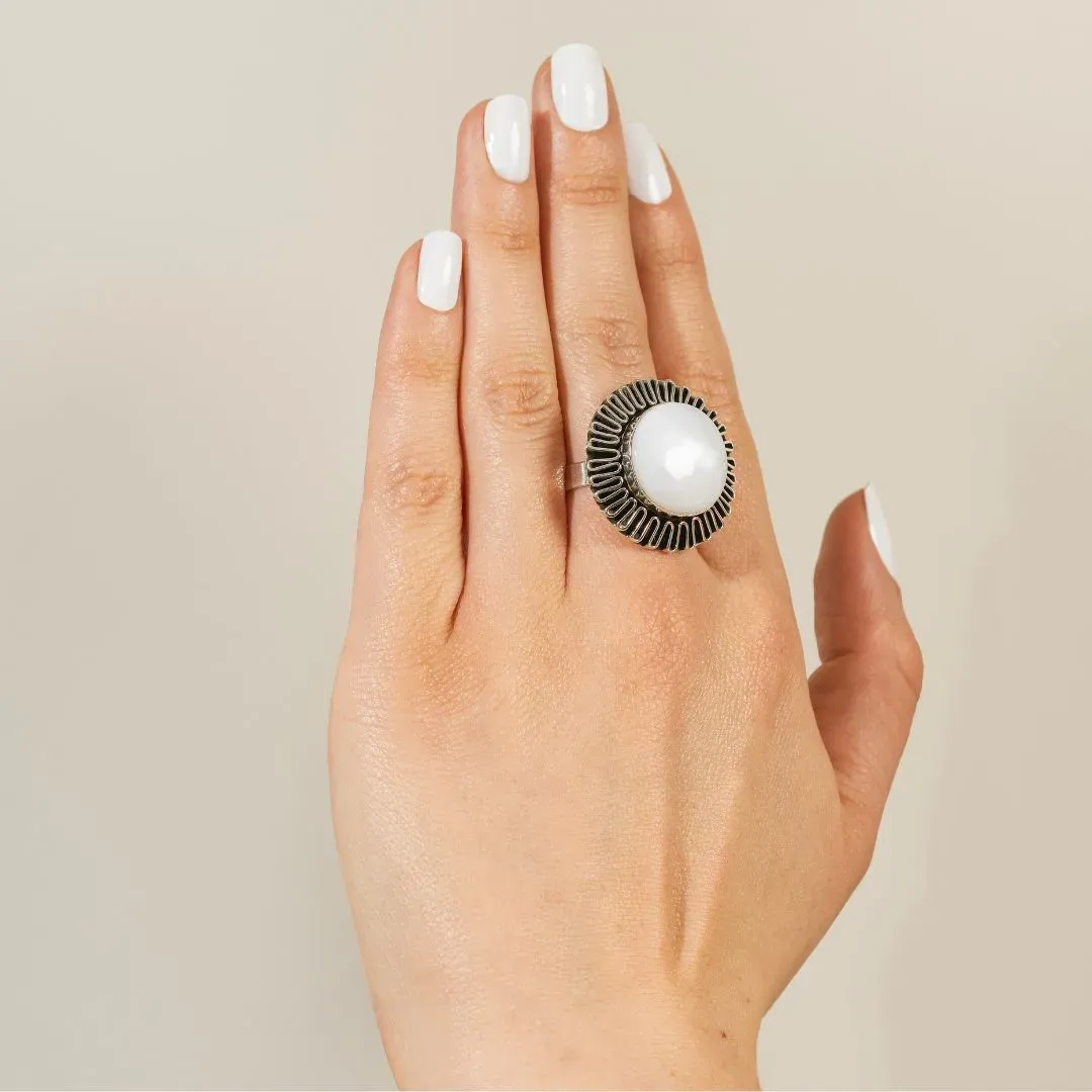 Este elegante anillo de plata con incrustación de concha blanca es una pieza única que refleja la belleza natural. Perfecto para agregar un toque de sofisticación a cualquier atuendo. Hecho a mano con materiales de alta calidad, este anillo es ideal para quienes buscan estilo y originalidad.