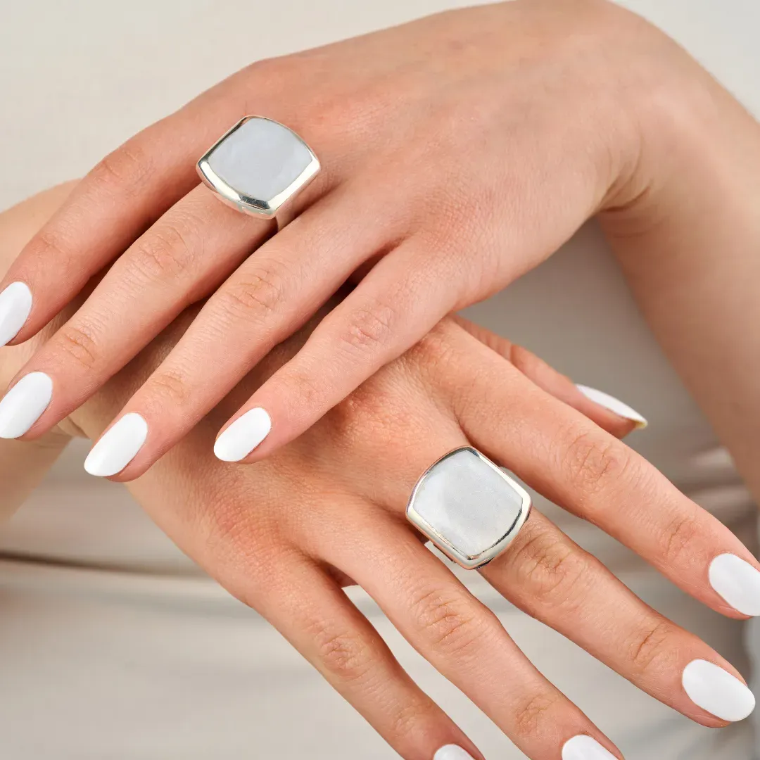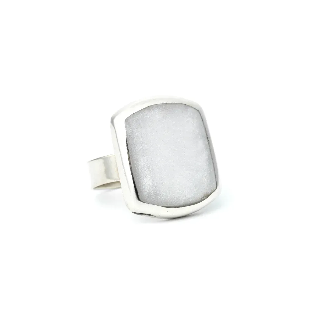 Este elegante anillo de Plata 925 presenta una hermosa piedra natural de Concha Blanca, que le brinda un toque único y sofisticado. Perfecto para agregar un toque de estilo a cualquier atuendo. ¡Hazlo tuyo hoy mismo!