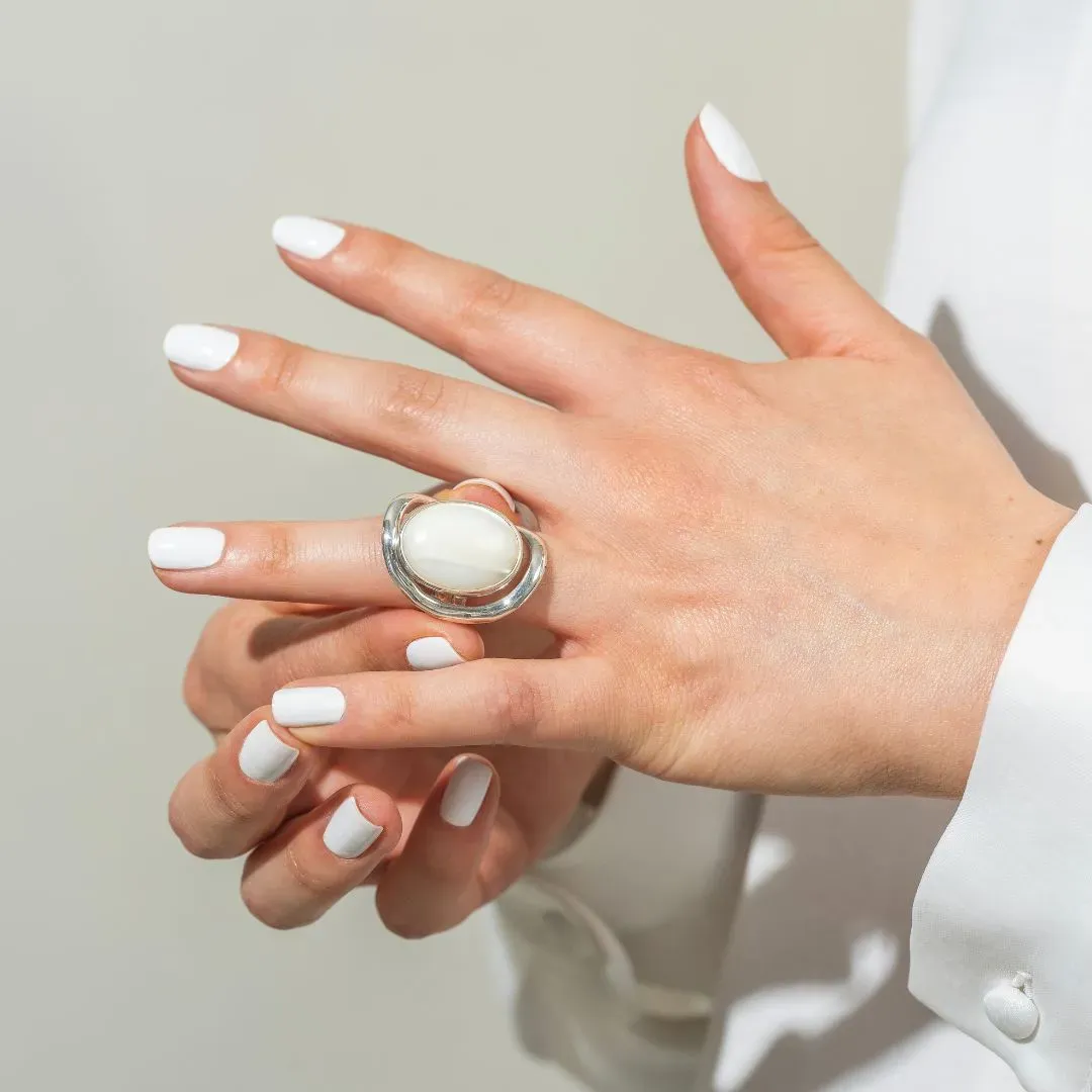 Este elegante Anillo de Plata con piedra natural Concha Blanca es la combinación perfecta de estilo y belleza. La piedra Concha Blanca le da un toque único y sofisticado, ideal para lucir en cualquier ocasión. Añade un toque de elegancia a tu look con este hermoso anillo.