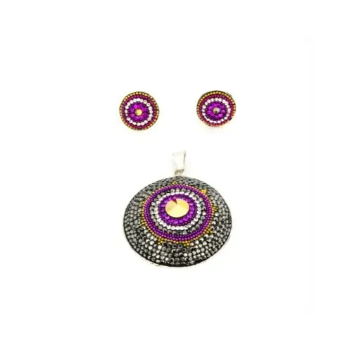 Este juego de dije y aretes redondos es el complemento perfecto para cualquier ocasión. Con un diseño elegante y moderno, resaltará tu estilo y personalidad. Hecho con materiales de alta calidad, este conjunto es ideal para lucir radiante y sofisticada. ¡Hazte con él y deslumbra a todos!