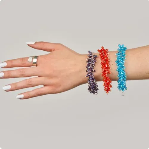 Estas pulseras de cristales de colores son el complemento perfecto para darle un toque de elegancia y estilo a tu look. Hechas a mano con materiales de alta calidad, cada pulsera es única y vibrante, ideal para agregar un toque de color a tu outfit diario.