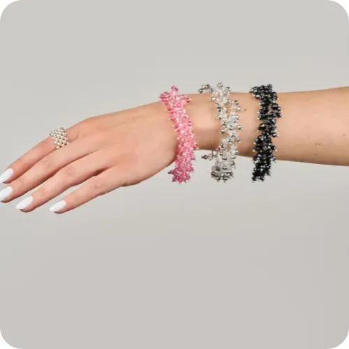 Estas pulseras de cristales son el complemento perfecto para cualquier ocasión. Con su brillo y elegancia, destacarás en cualquier evento. Hechas a mano con materiales de alta calidad, estas pulseras son ideales para agregar un toque de glamour a tu look. ¡Hazte con la tuya hoy mismo!